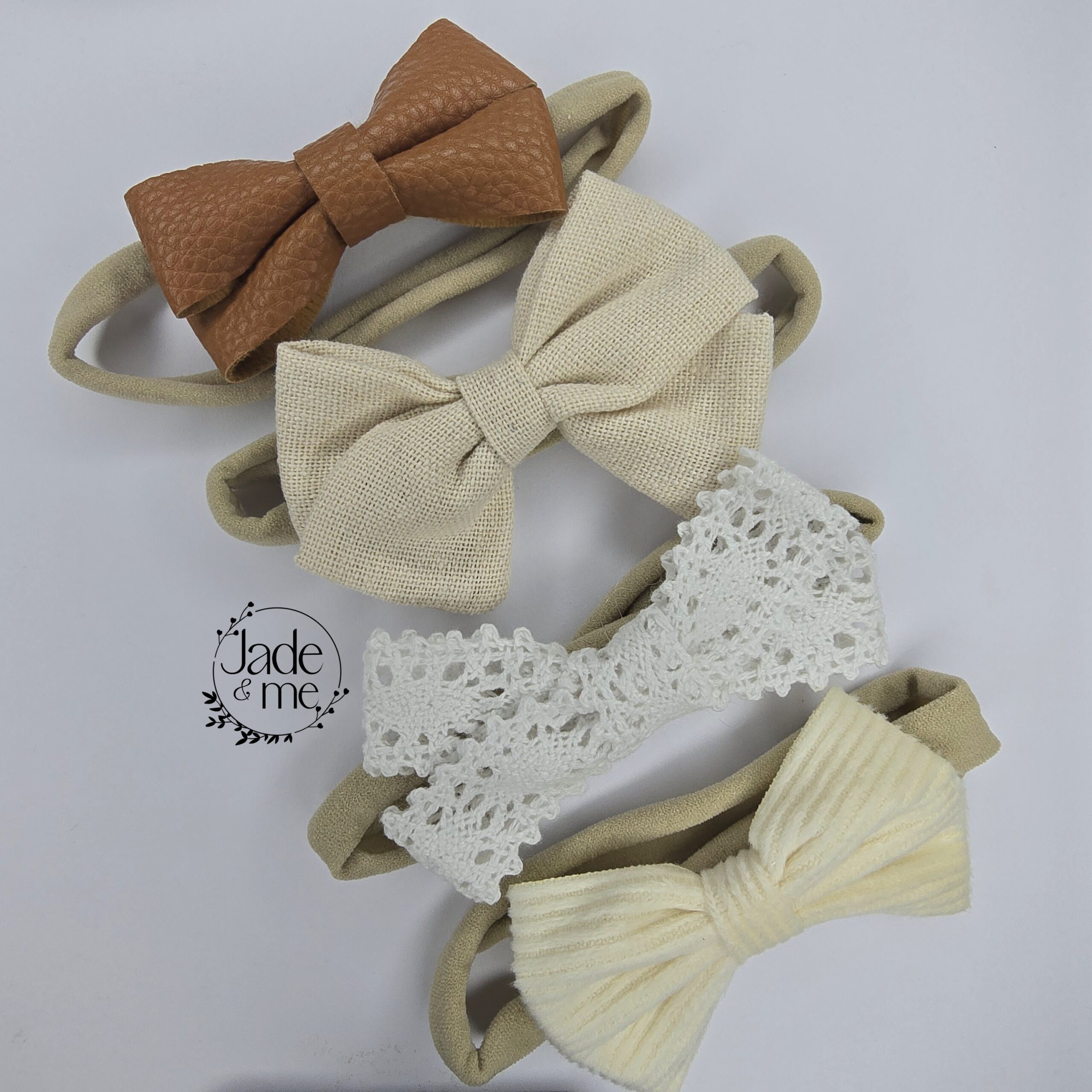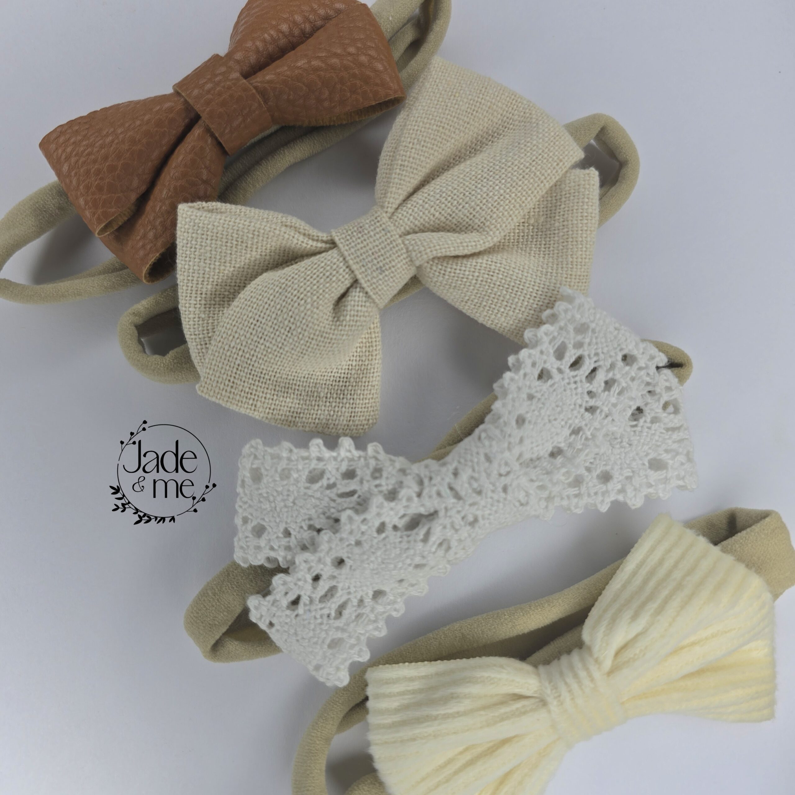 Elegant in White, Cream and Leather, 4 headbands in set